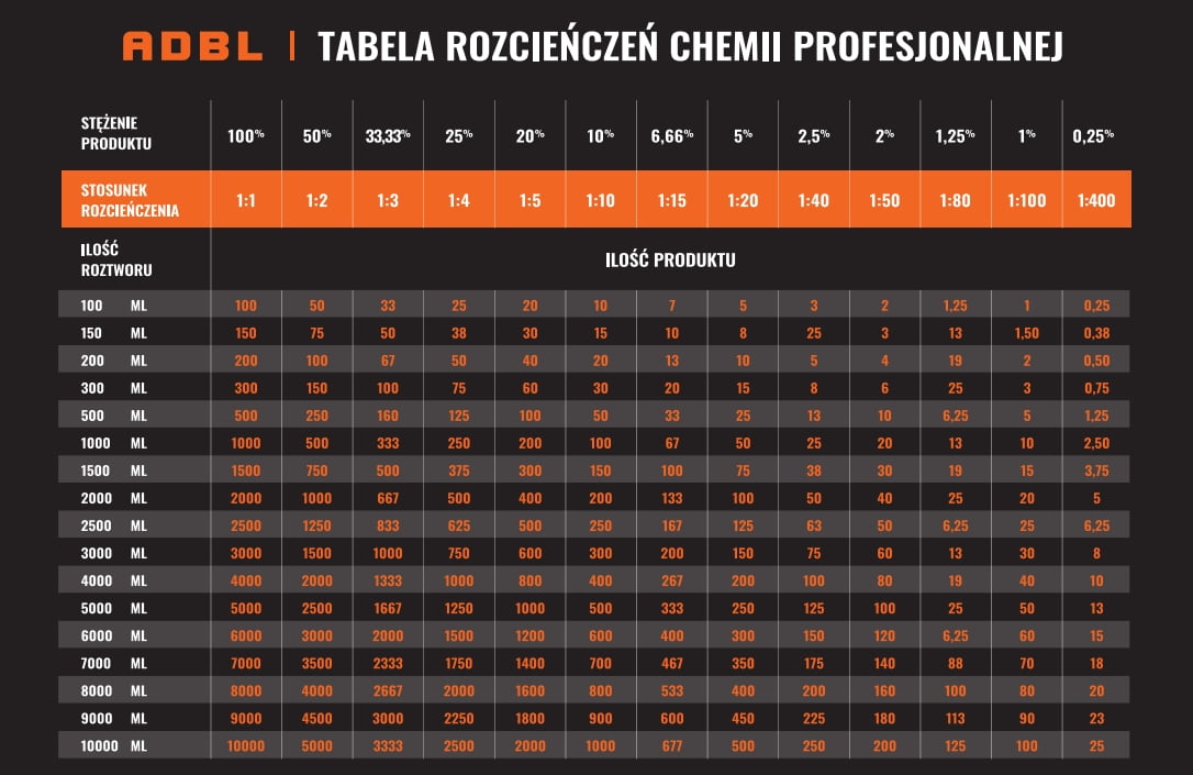 Nie wiesz, jak wymieszać produkt tak, aby był jak najbardziej optymalny? – Na pomoc przychodzi marka ADBL, która przygotowała te tabele specjalnie dla Ciebie!